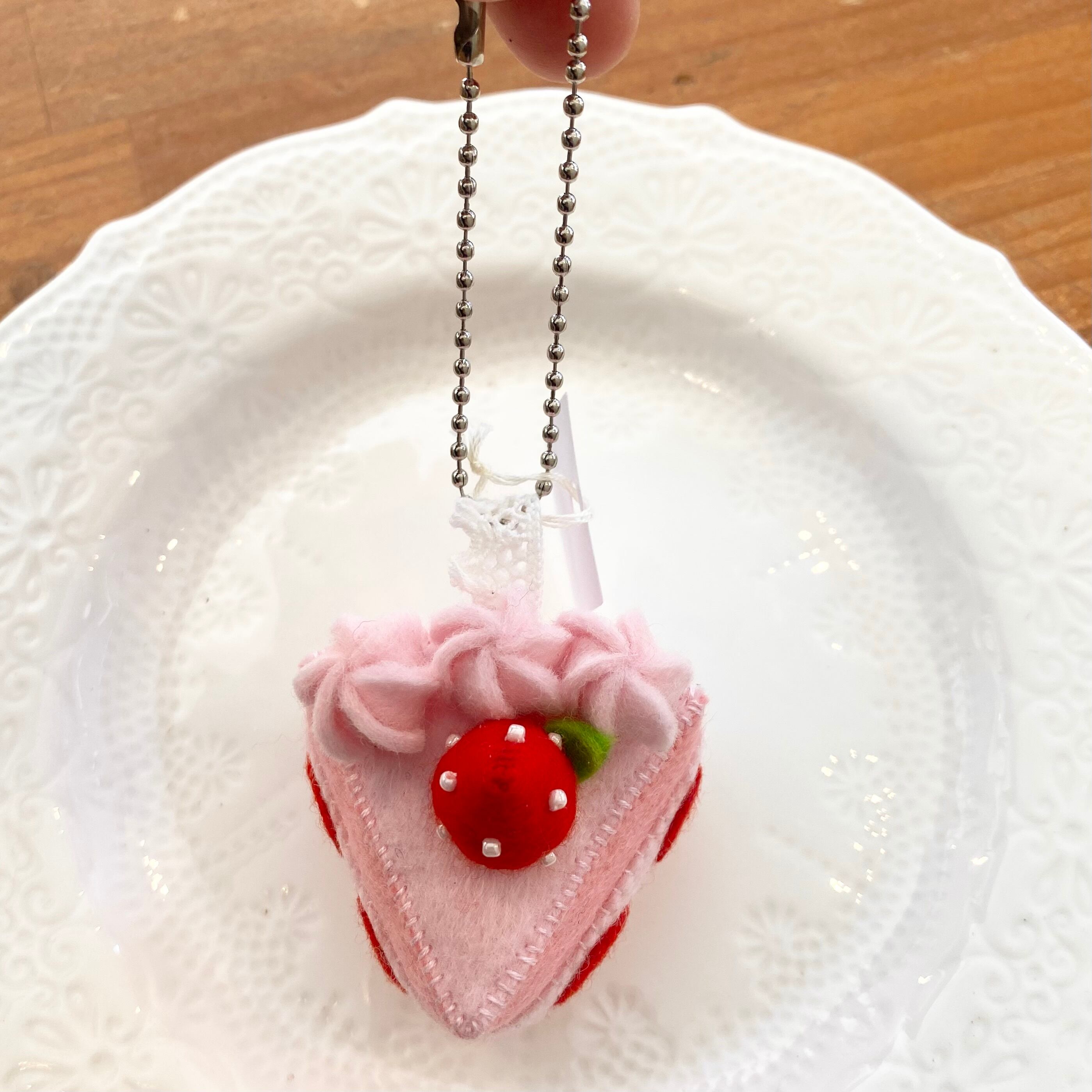 meguさんのフェルトでできたいちごのショートケーキのキーホルダー。