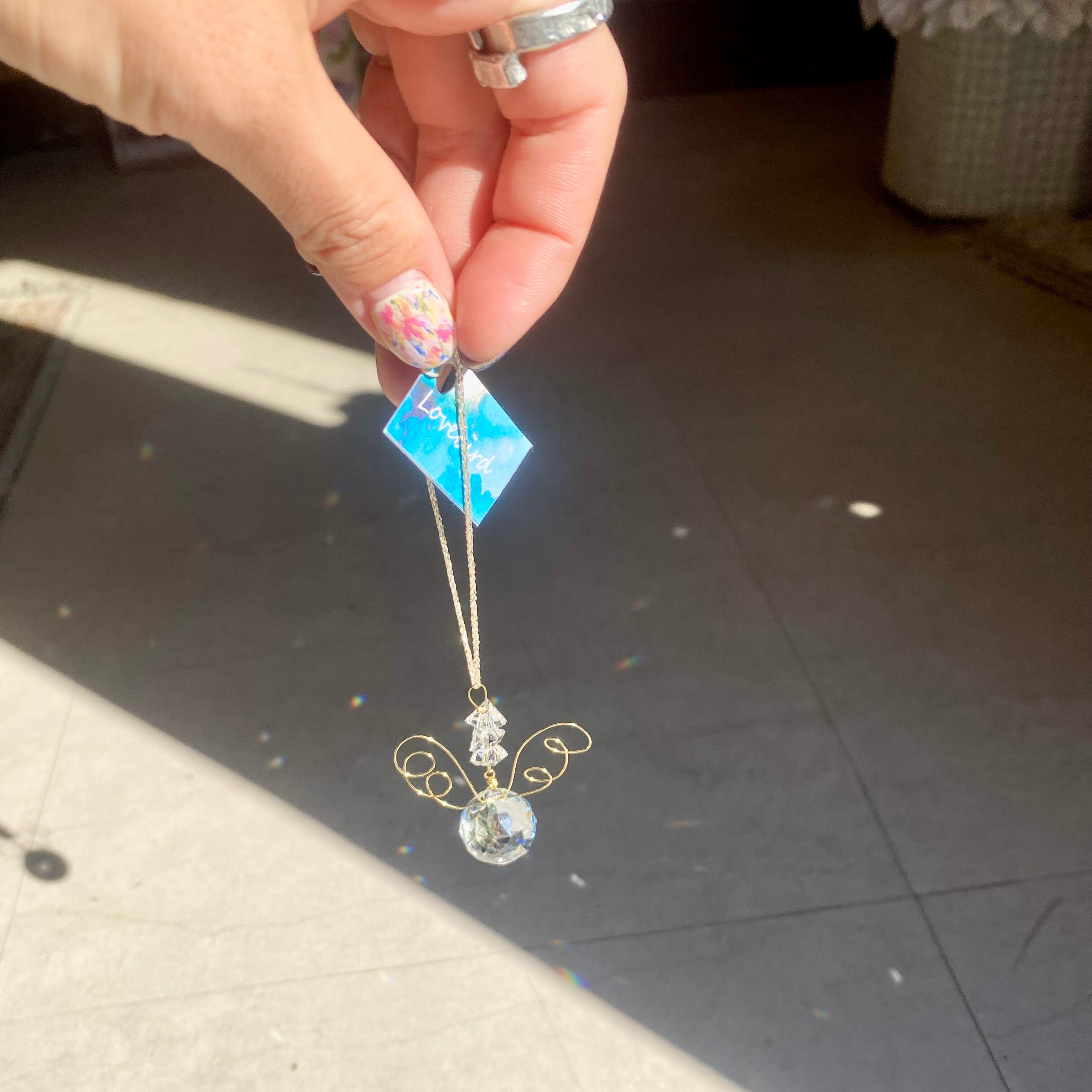 20mmのガラスを使用して作られた天使の羽の生えたサンキャッチャー。