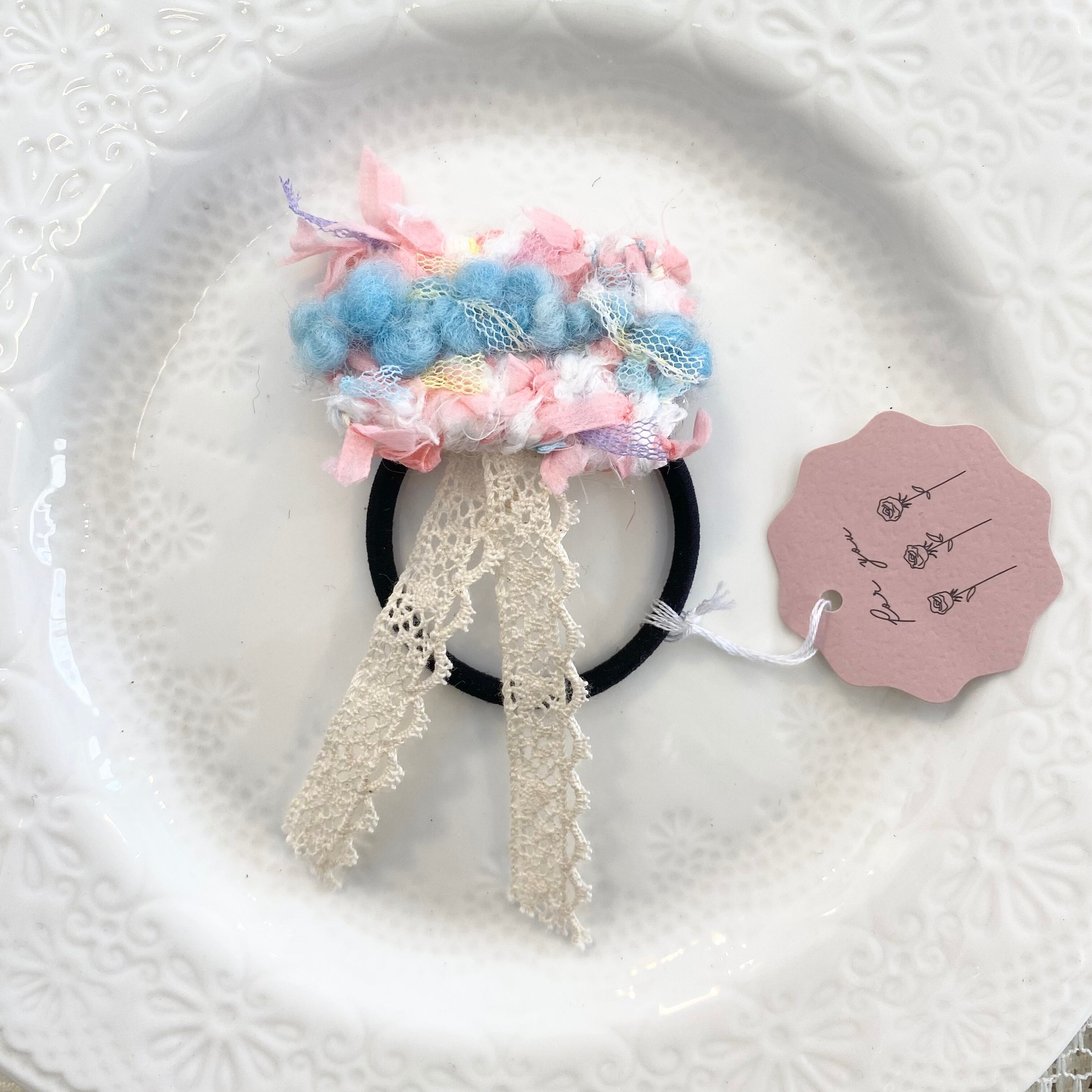 meguさんの引き揃え糸を織って作られた存在感たっぷりの可愛いヘアゴム。