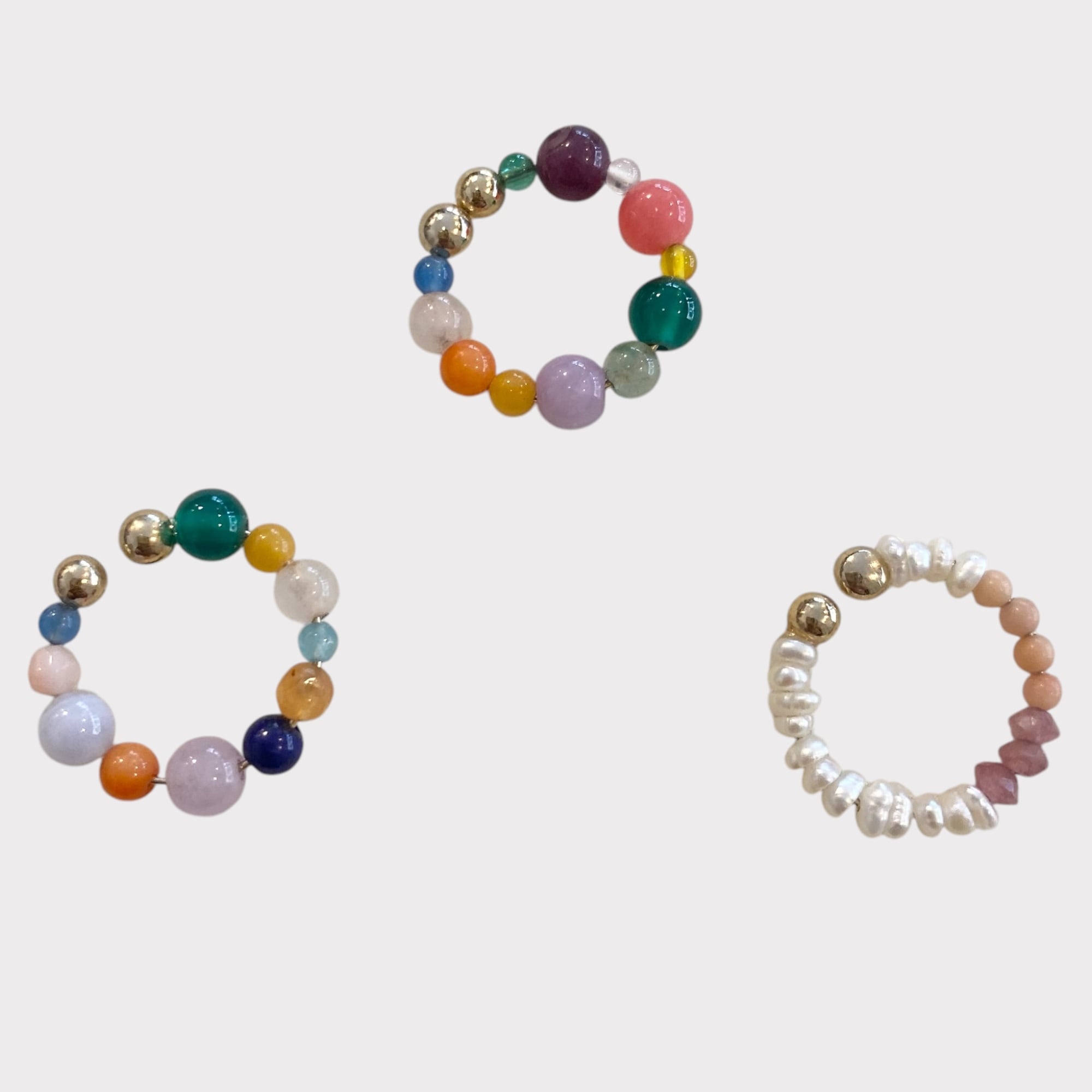GARDENIAさんの様々なビーズを組み合わせて作られたパール×ストーンイヤカフ。