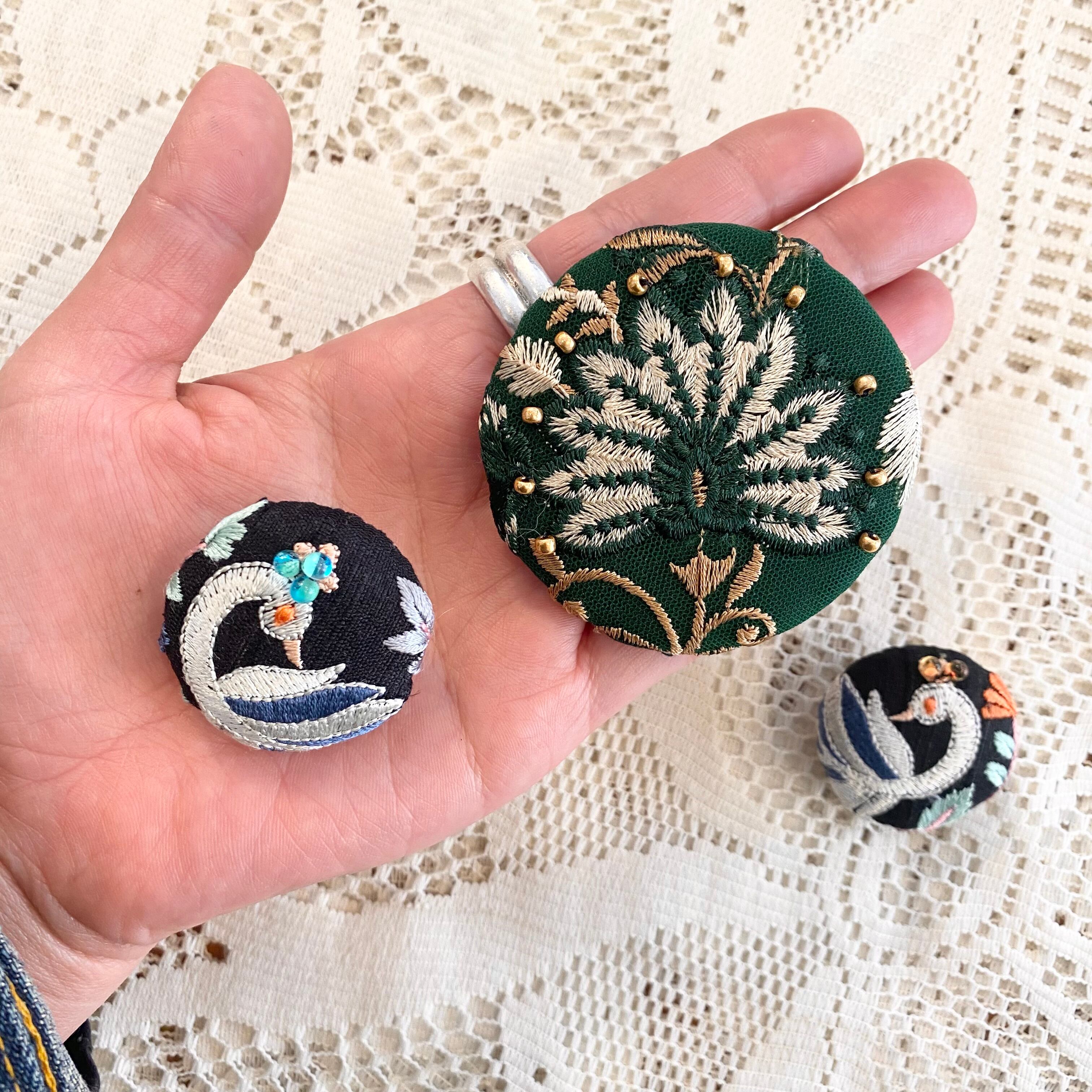 刺繍リボンにパールやビーズを付けて作られたブローチです。