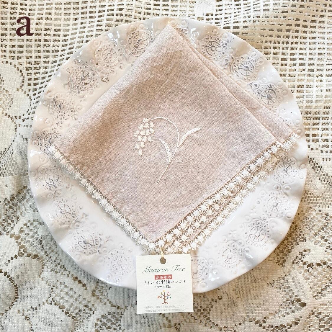 Macaron Treeさんの紅茶染めリネン刺繍ハンカチ