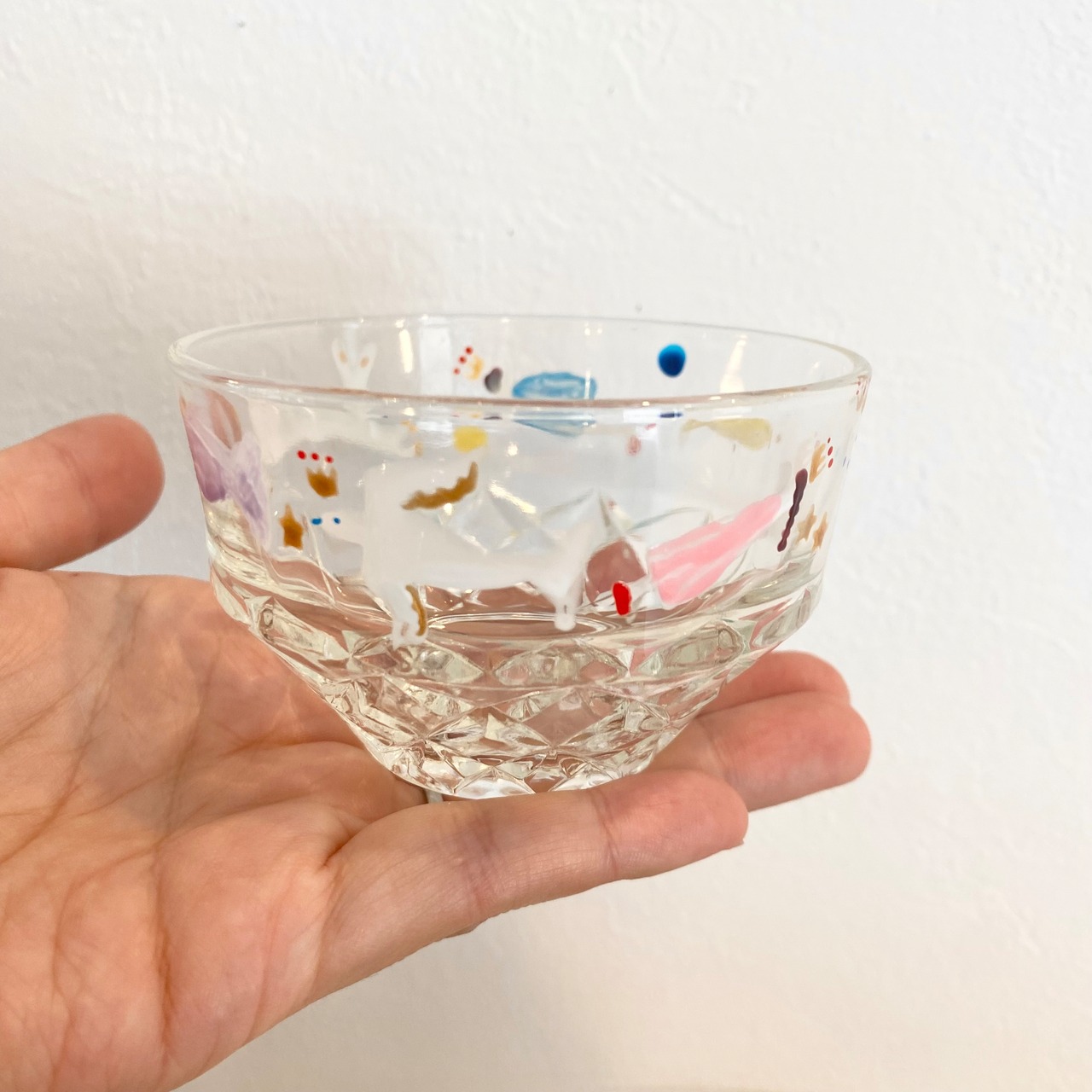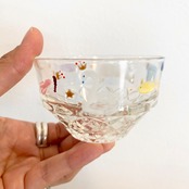 一点、一点 絵付けを施したレトロガラスのお皿です。