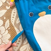 鮮やかなブルーと内側の黄色のストライプ、お手手や尻尾までついて、お鼻や足はちょこっとぷっくりしています。