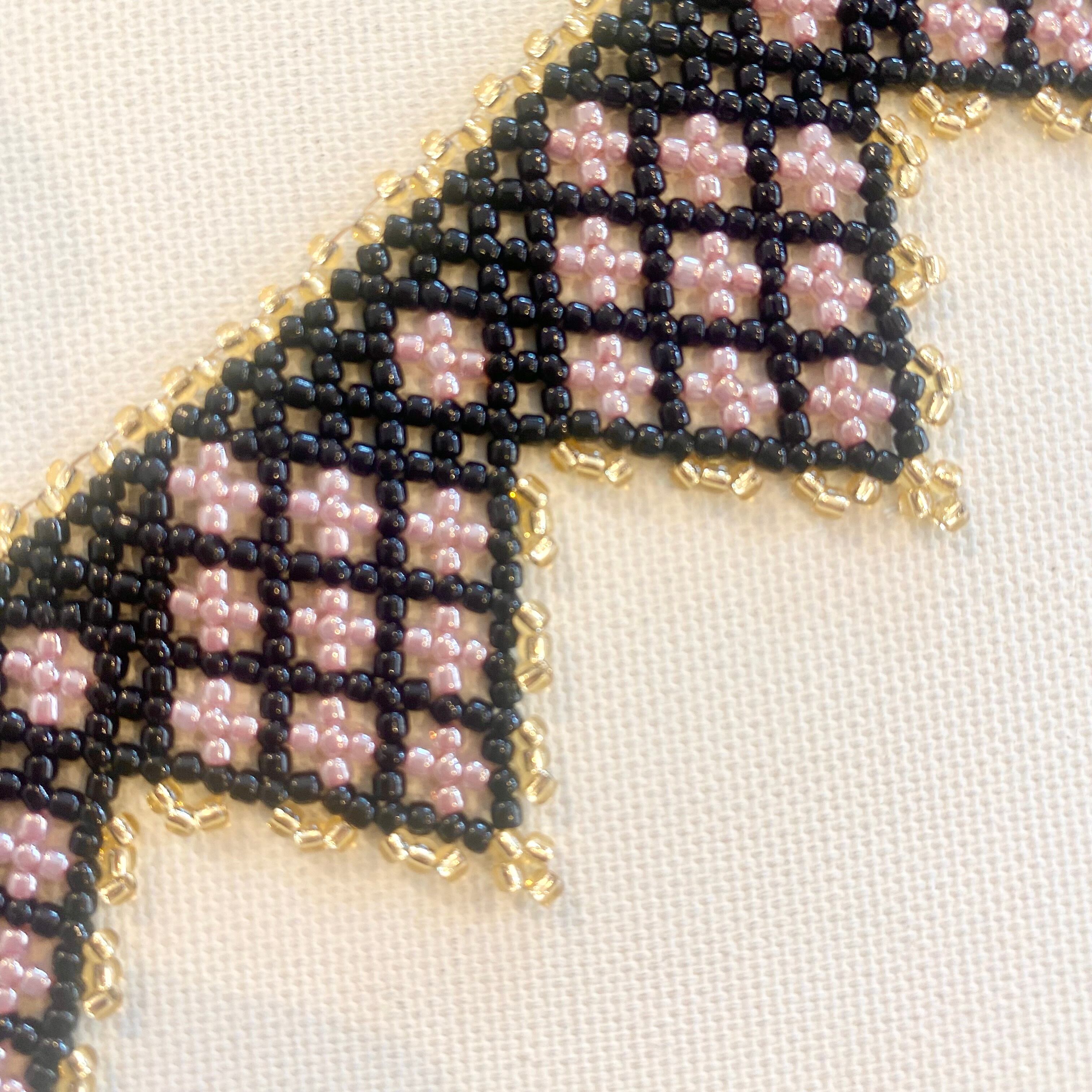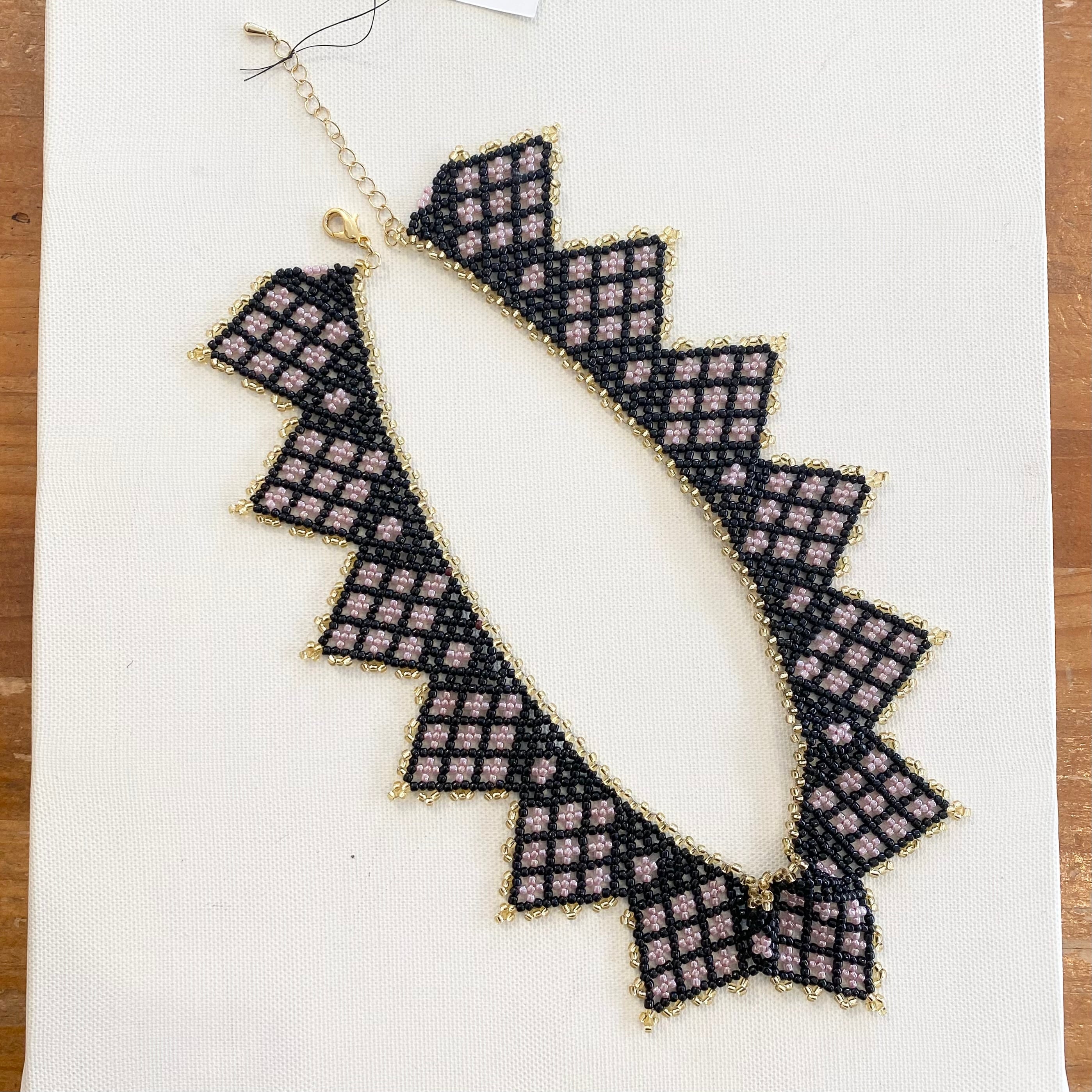 【びーずやさん】ブラック×ピンク×ゴールド ネックレス