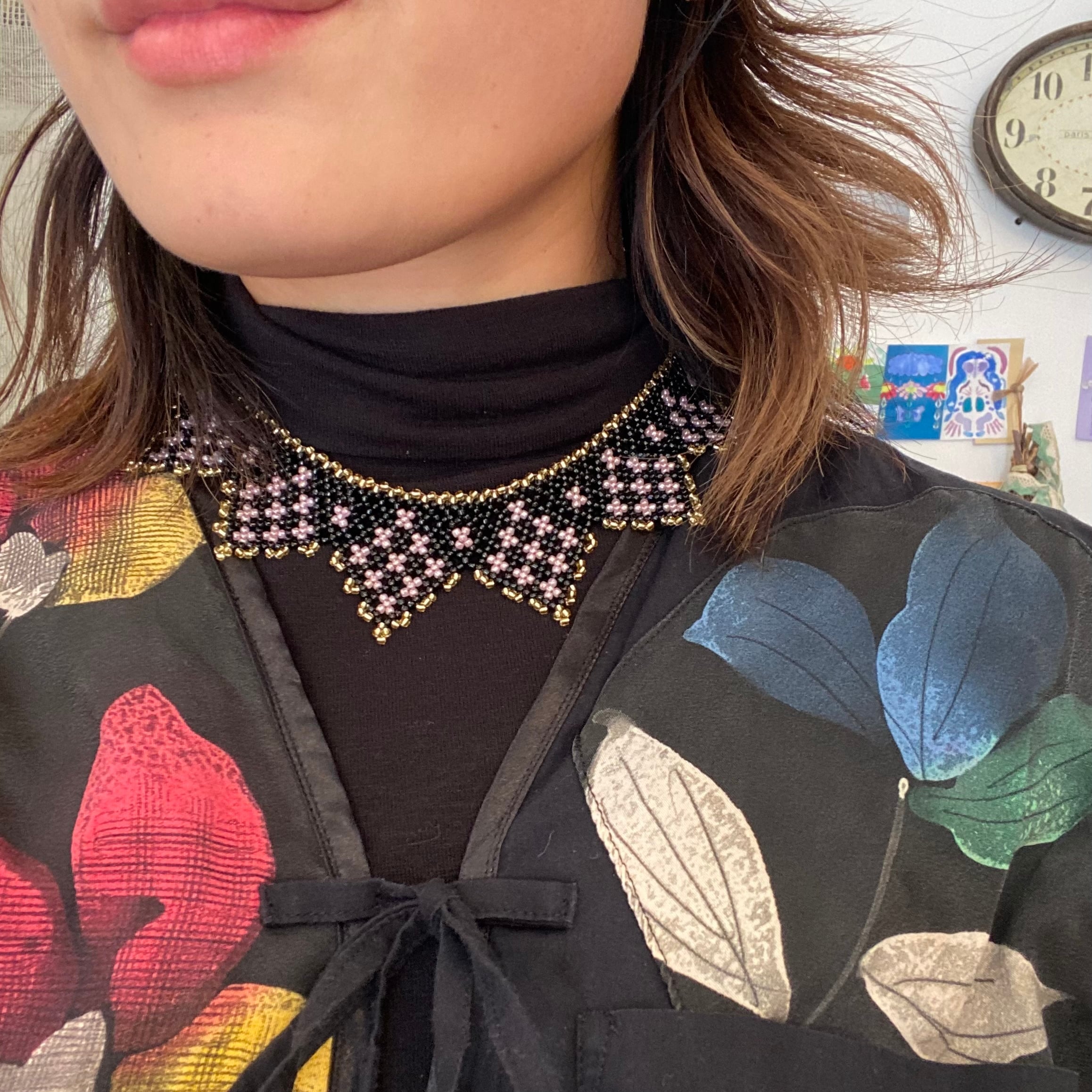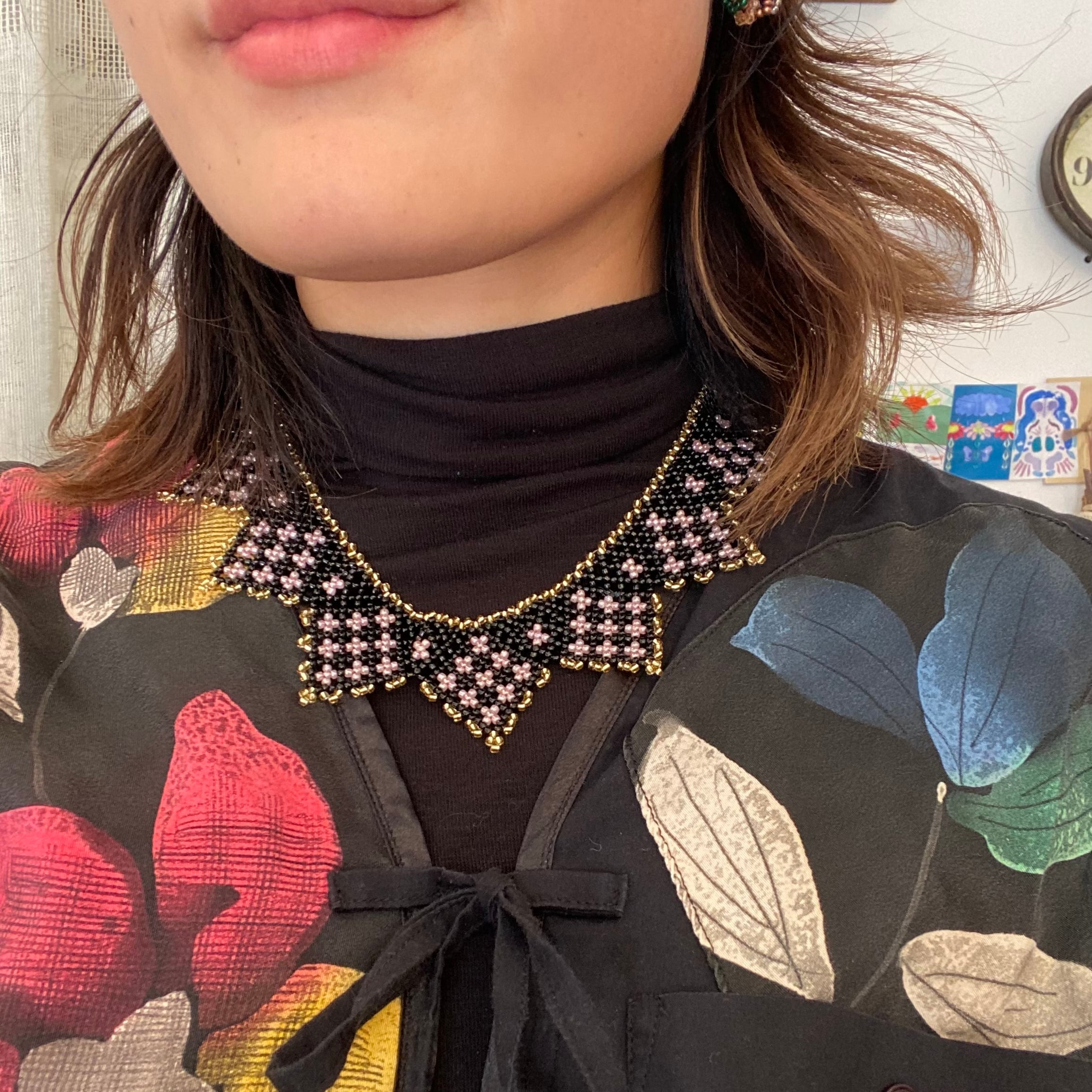 付け襟の様な、ゴージャスなビーズのネックレス。