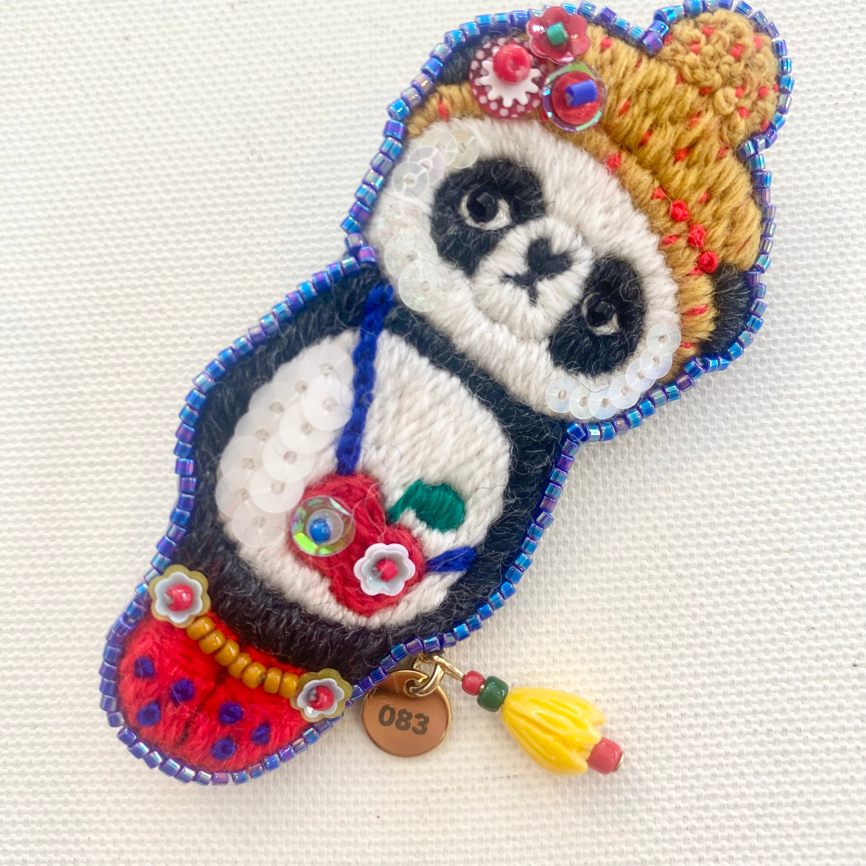 オオサヤカ165さんのパンダの刺繍ブローチ。