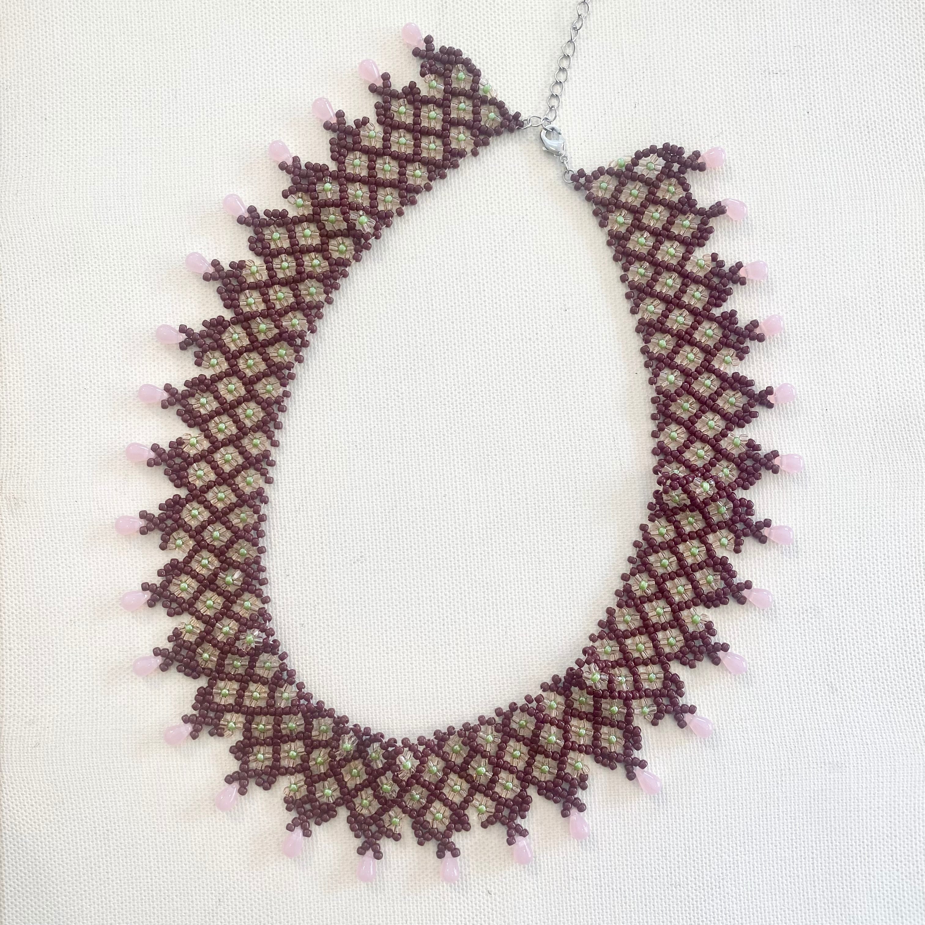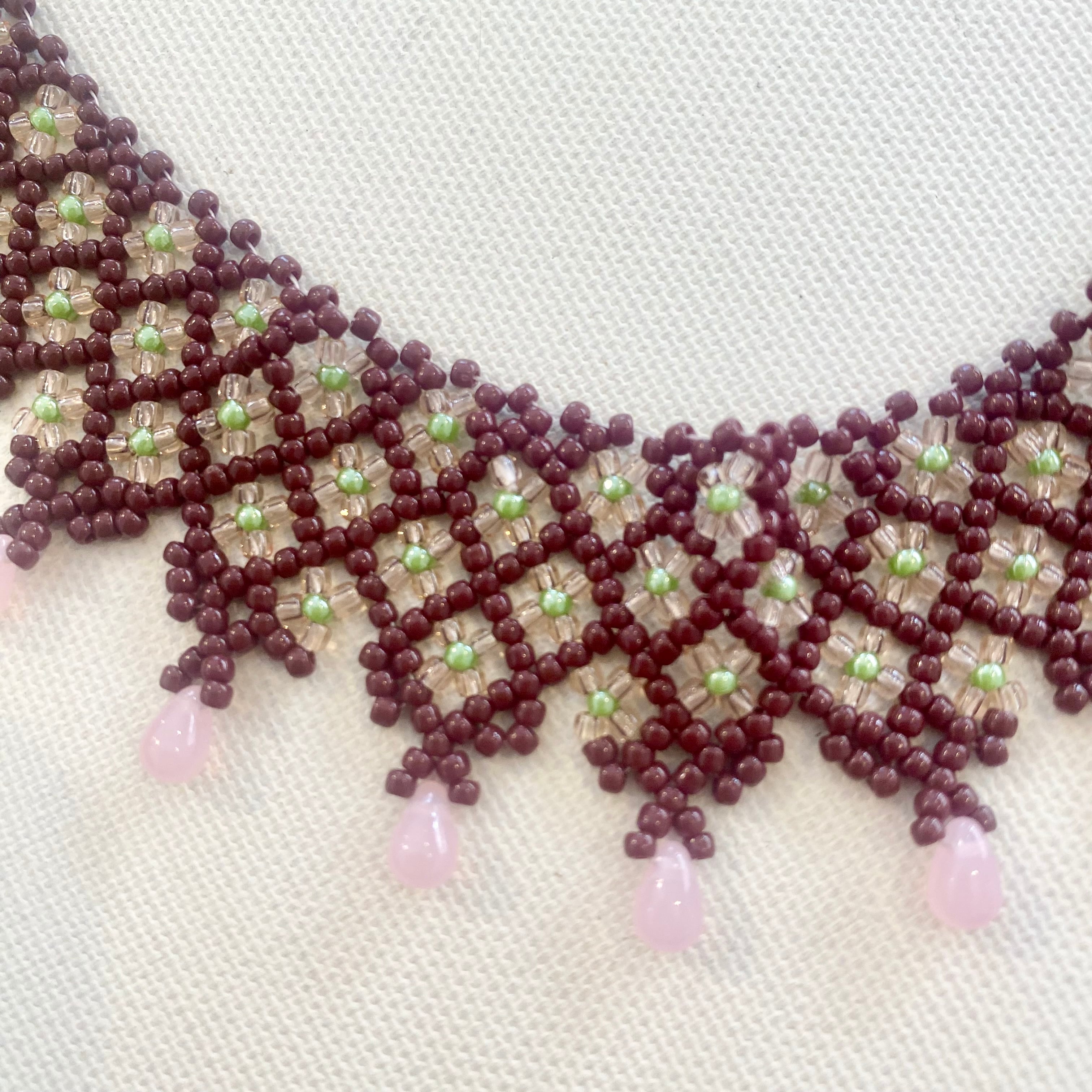 【びーずやさん】ブラウン×ピンク×グリーン ネックレス