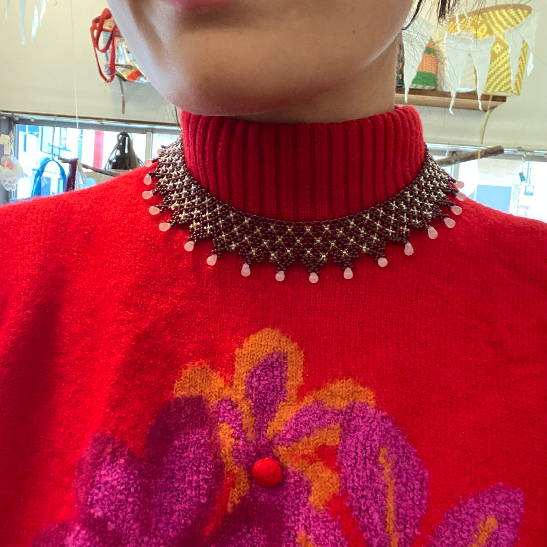 付け襟の様な、ゴージャスなビーズのネックレス。