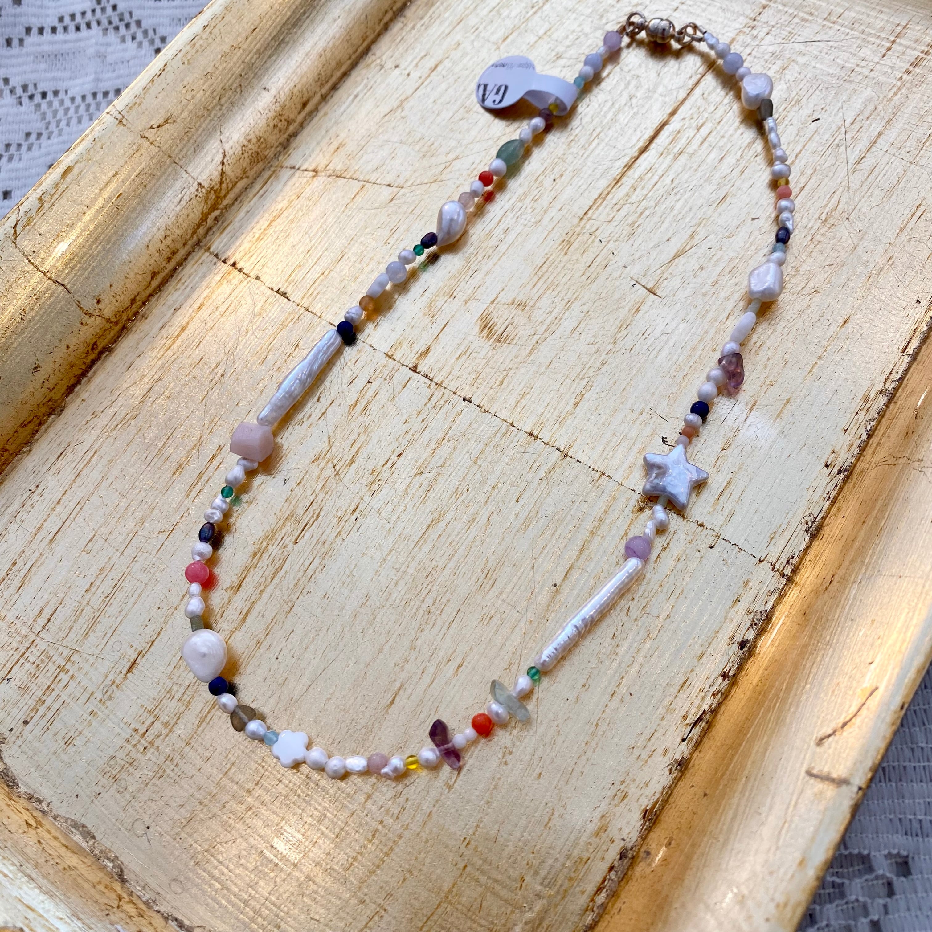 GARDENIAさんの希少なパールとガラスビーズや天然石を組み合わせてできた贅沢でスペシャルなネックレス