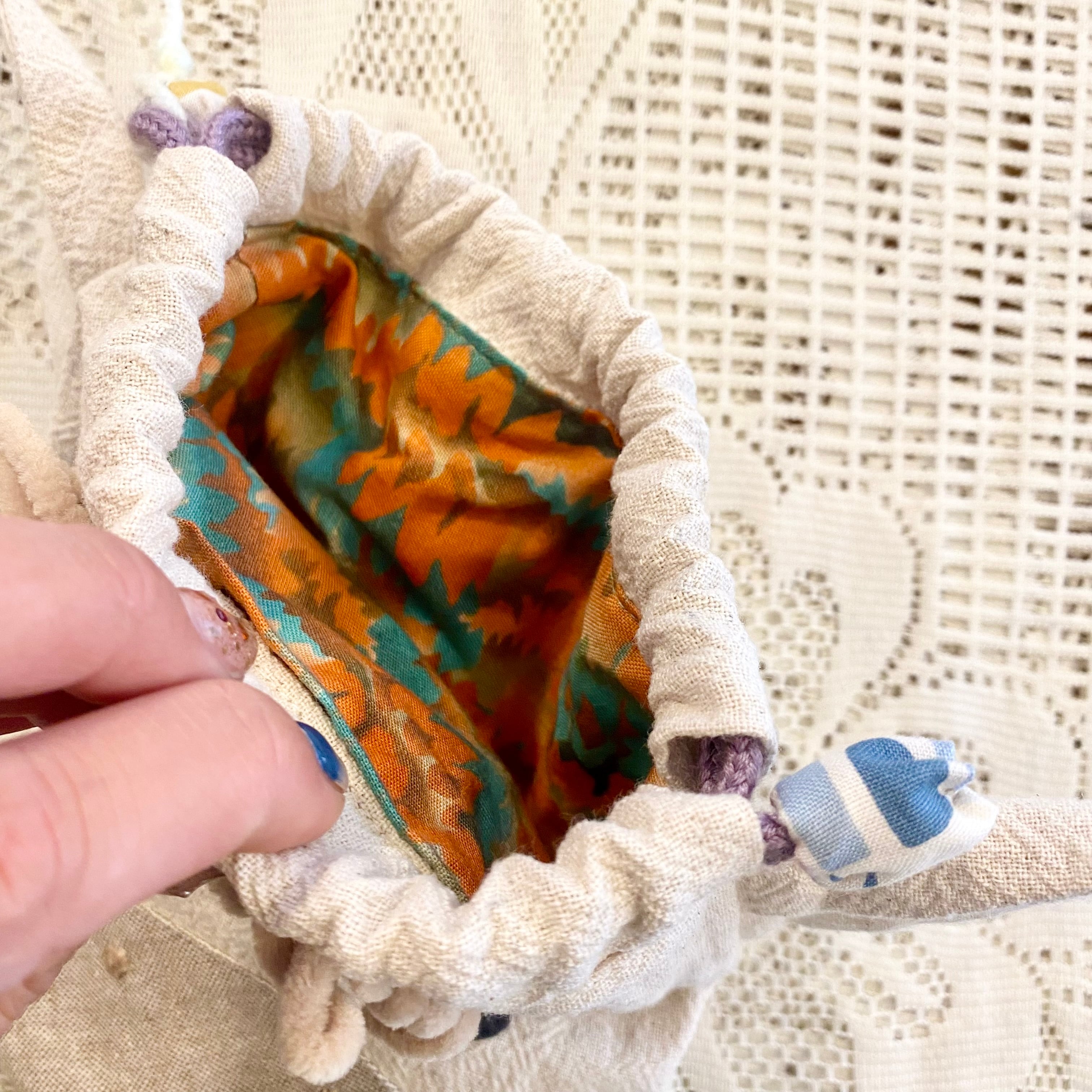 コロンとまあるいポーチた可愛いお顔、持ち手や内側の生地も1点ずつ可愛いです♪