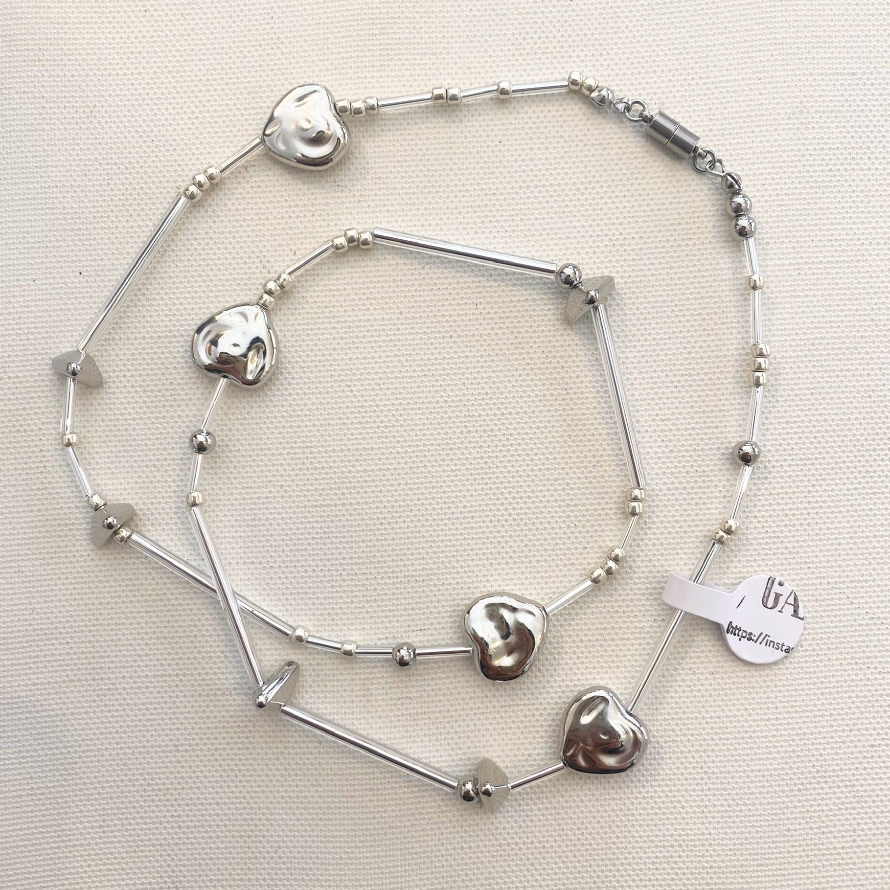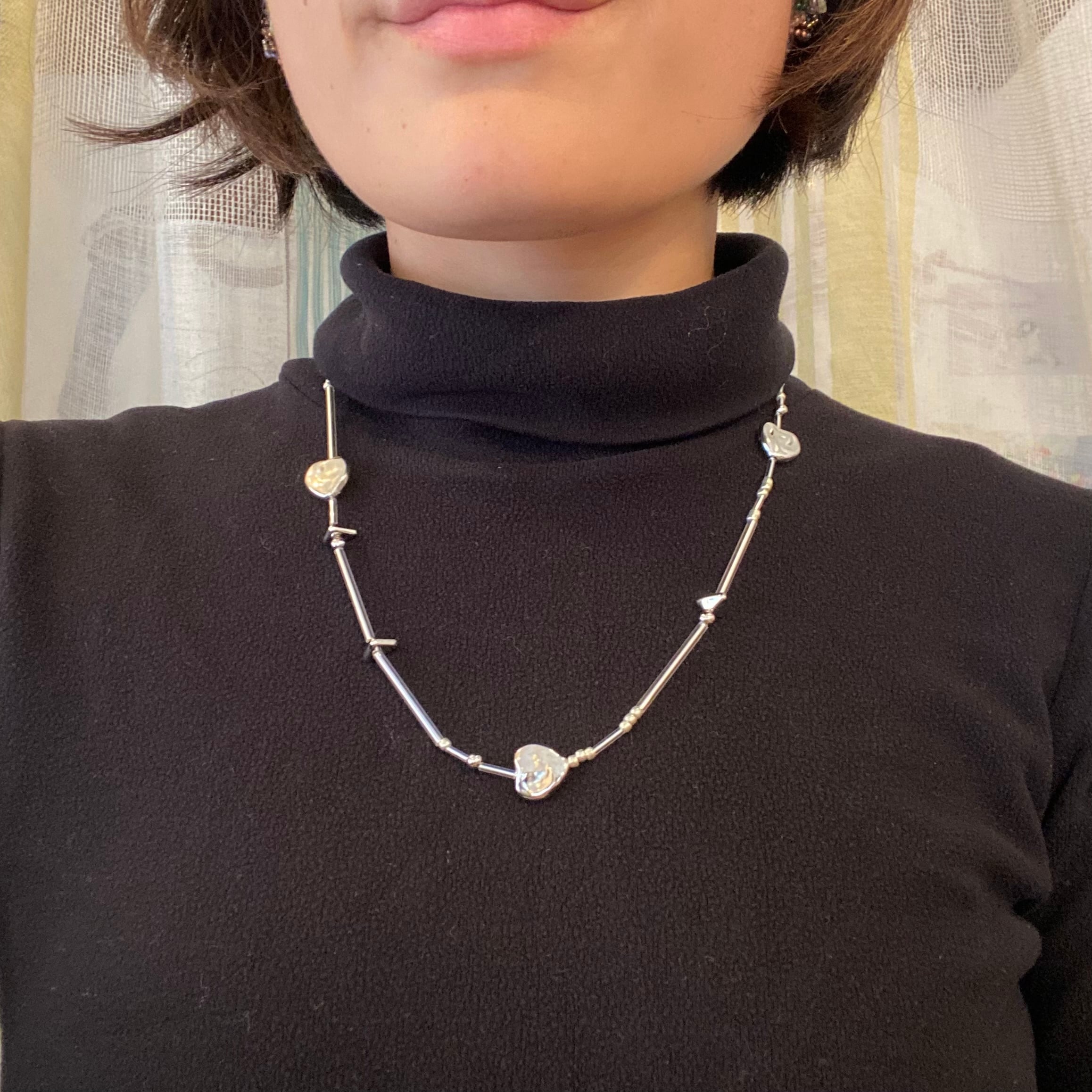 GARDENIAさんの様々なビーズを組み合わせてできた素敵なネックレス シルバー