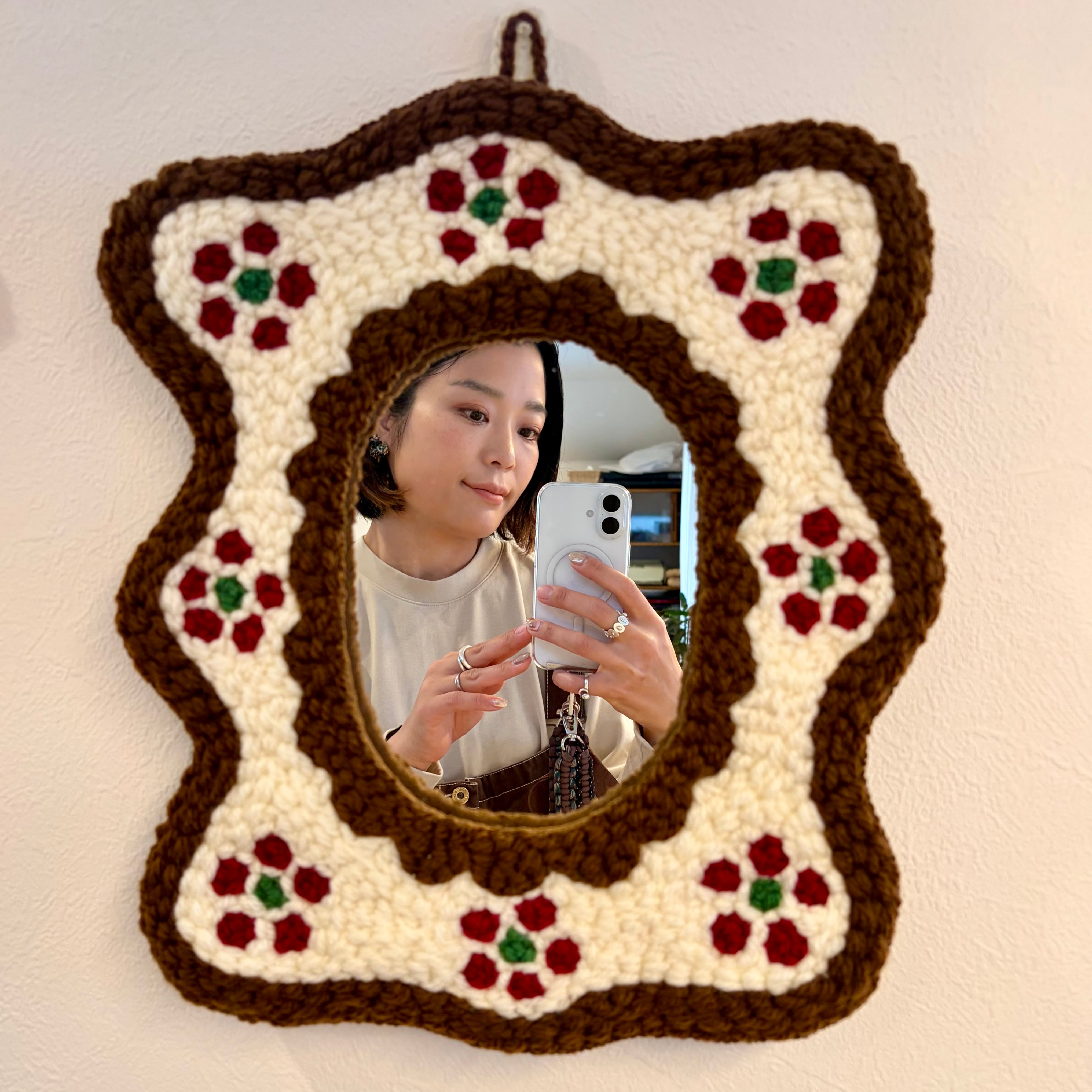 お気に入りのカップで飲むコーヒーが特別美味しく感じたり、大好きな音楽を聴くとテンションが上がる様に、この鏡が誰かのお気に入りとなり、暮らしを彩り、豊かに出来たら良いなあと製作しました。
