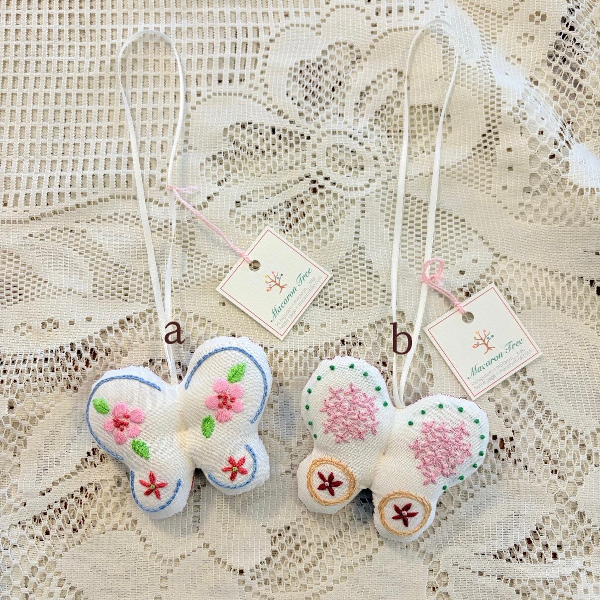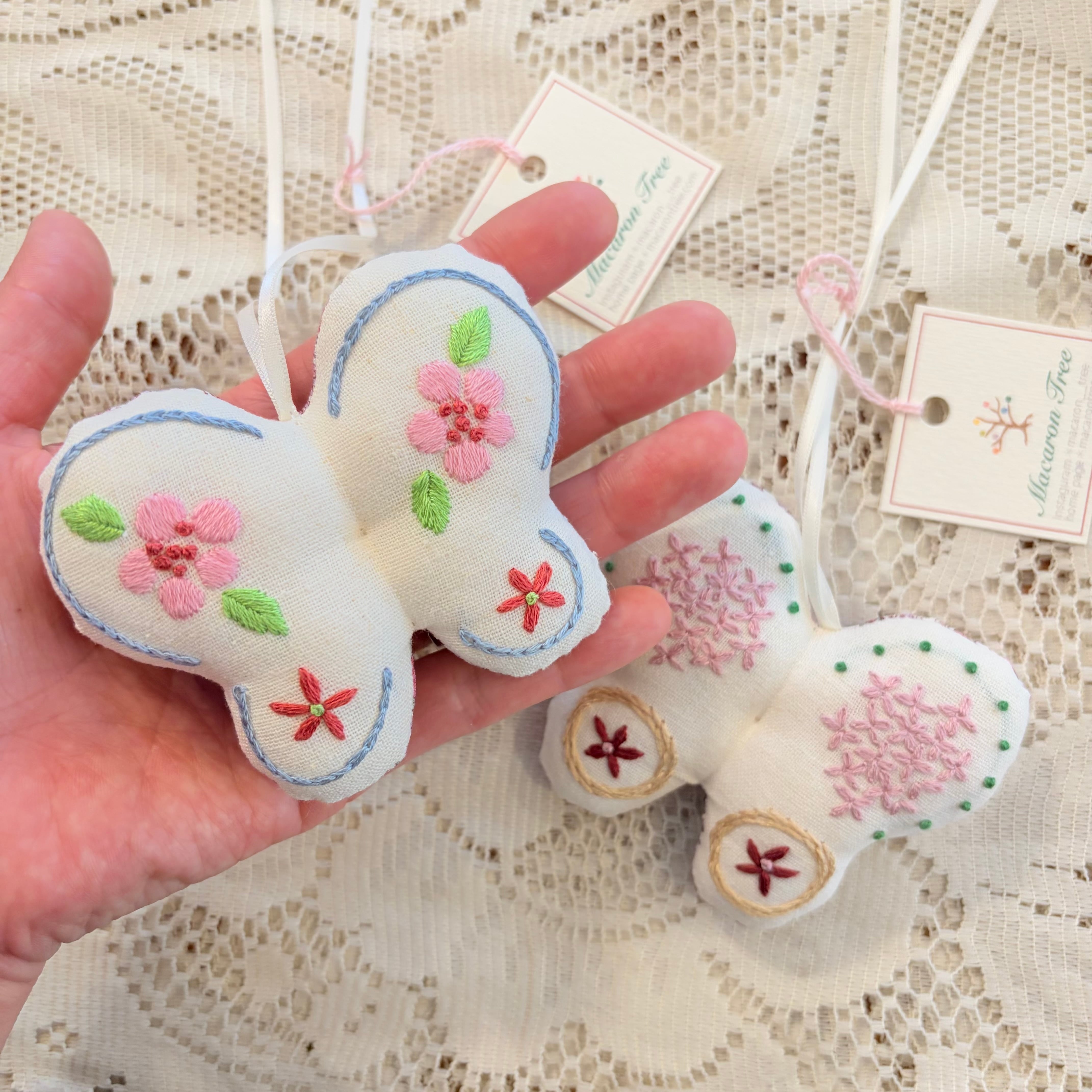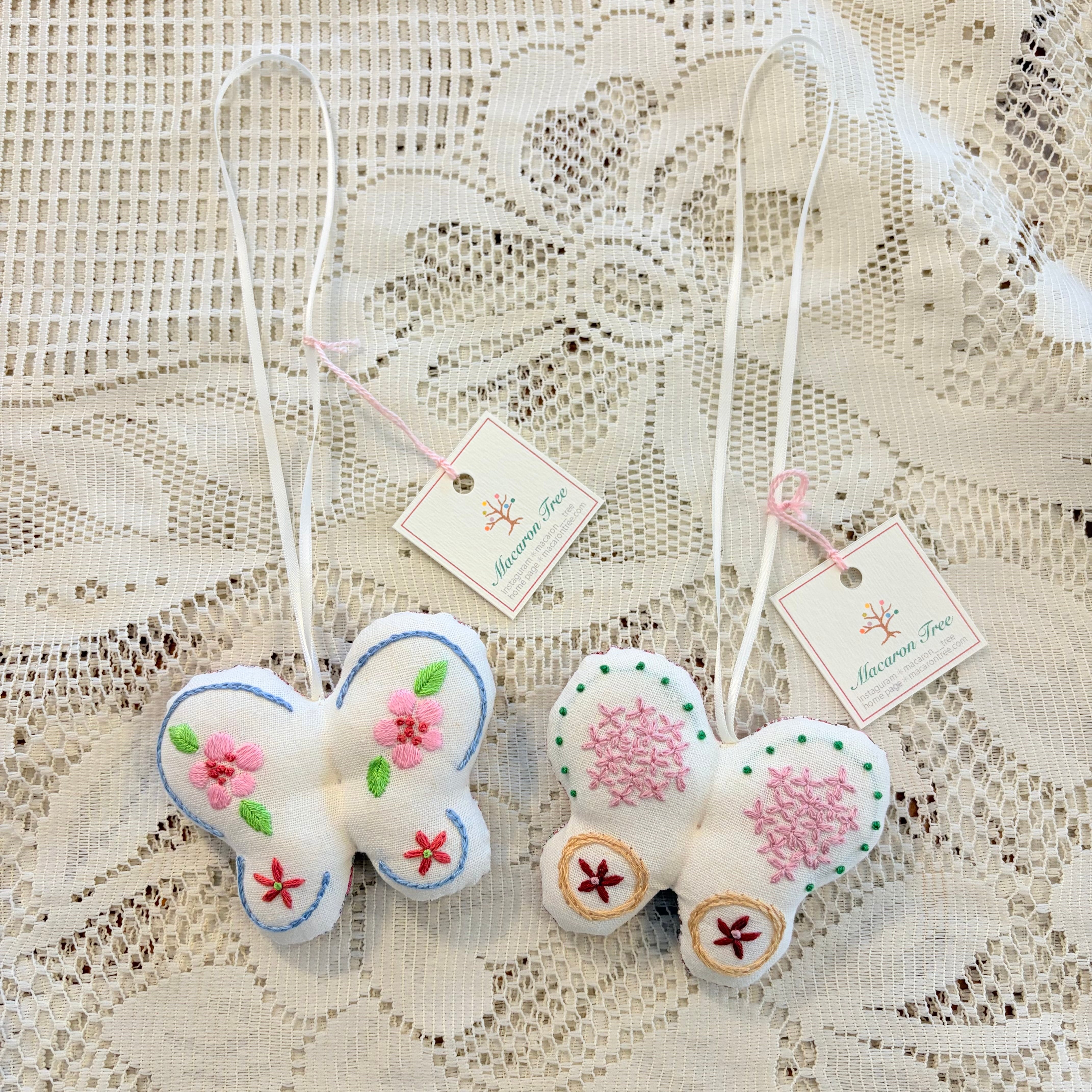Macaron Treeさんのお花の刺繍たっぷりの蝶々オーナメント