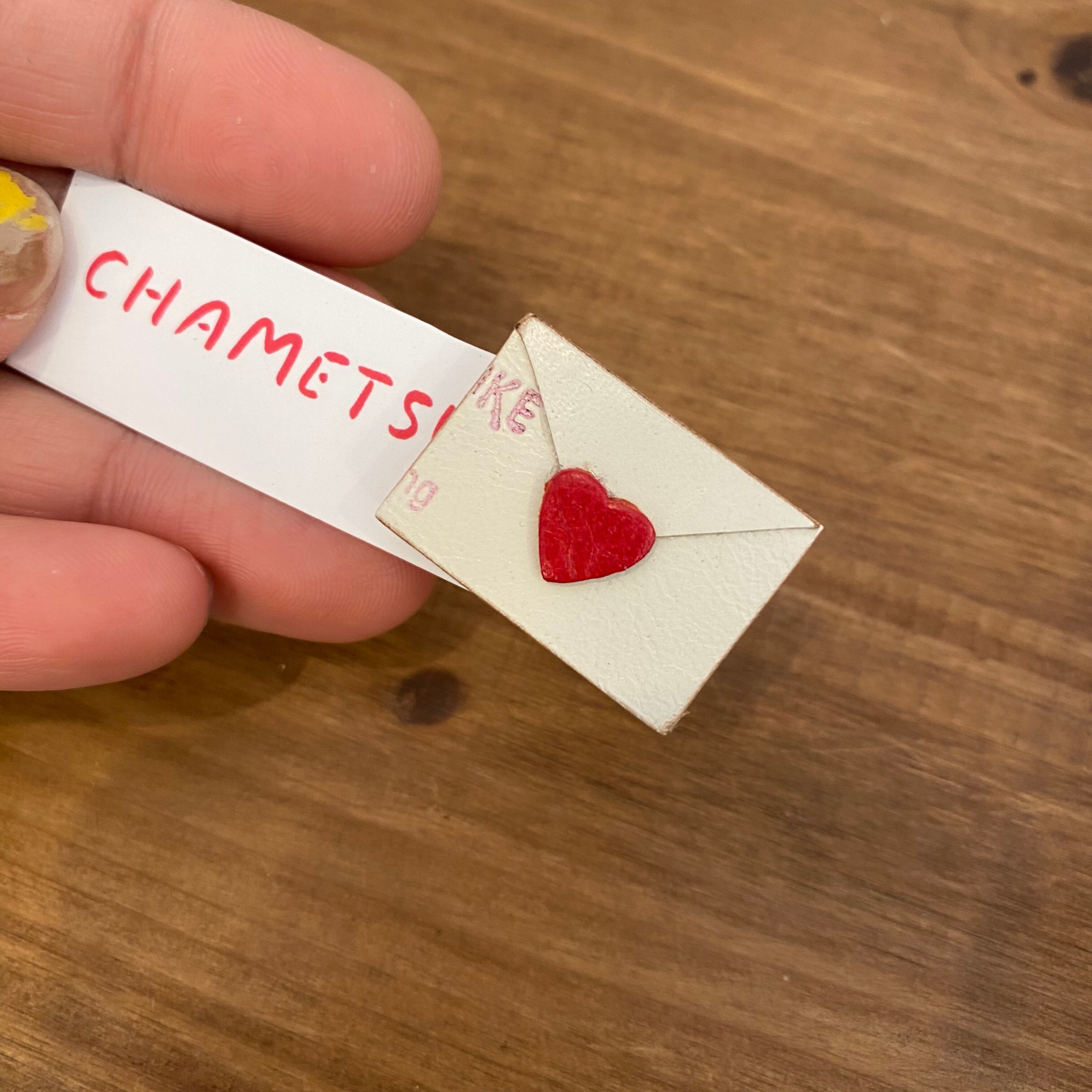 CHAMETSUKEさんの革でできた小さなラブレターのピアスとイヤリング♪